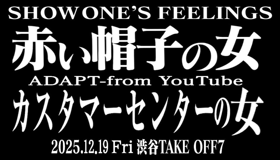 2025/12/19 LIVE SHOW ONE'S FEELINGS 『赤い帽子の女//カスタマーセンターの女 ADAPT - from YouTube 』明日本番 配信予約受付中